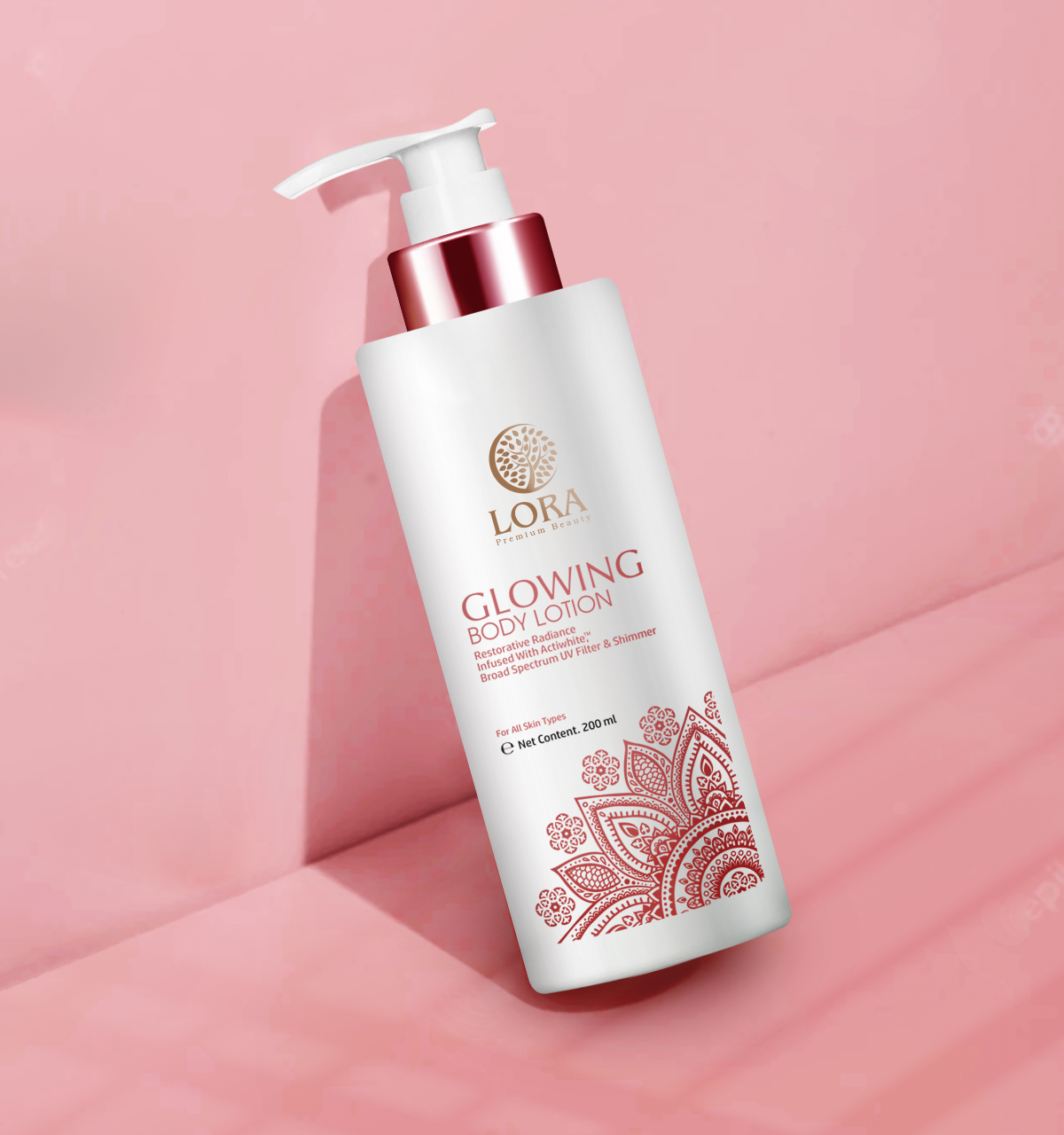 Restorative Radiance Infused With Actiwhite™, Shimmer & Broad Spectrum UV Filter LORA Glowing Body Lotion is a unique premium formula. Actiwhite™ composed of active botanical extracts, which eliminate skin discoloration and improve skin radiance. Active moisturizers keep skin hydrated and smoother. Added UV Filter ensures protection against harmful rays of the sun. Get smoother, radiant & glowing skin all over your body.